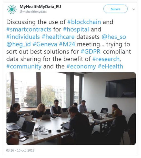 Il y a ainsi tout lieu de penser que le site suisse d’échange des données médicales des patients MonDossierMedical.ch, qui a été lancé par le canton de Genève en 2013 déjà, sert de vitrine au projet MyHealthMyData vis-à-vis du public helvétique.