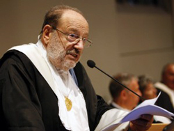 Scriitorul Umberto Eco (foto) a primit în luna mai 2013 titlul de Doctor Honoris Causa în comunicare şi cultură mass-media la Universitatea din Torino şi, cu această ocazie, întâlnindu-se cu jurnaliştii, a vorbit despre reţelele de tip facebook.