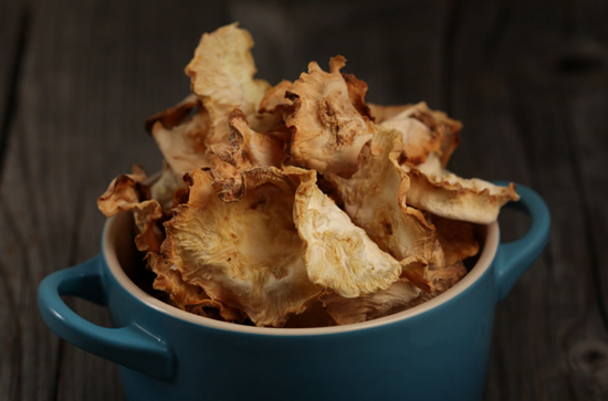 Când le-aţi terminat de copt pe toate, aşezaţi chipsurile din nou în tăvi, tot unele lângă altele, fără a le suprapune. Ele s-au micșorat destul de mult la coacere, aşa că nu vor mai ocupa atâta spaţiu şi vor rezulta mai puţine tăvi. Scădeţi temperatura cuptorului la 130ºC cu ventilator şi coaceți chipsurile încă 20-25 de minute, până se deshidratează şi mai mult şi devin crocante.