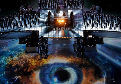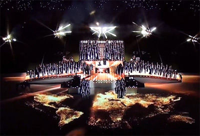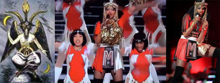 Anul acesta, deschiderea campionatului de Super Bowl a fost plină de simboluri masonice: coroana lui Hathor, Isis, simbolism egiptean, simbolismul „ochiului atoatevăzător” luciferic, soarele „înaripat”, litera „M” (care este a 13-a literă a alfabetului şi reprezintă cele 13 „linii de sânge” satanice, reprezentând totodată cele 13 trepte pe care păşeşte un mason, după a fost acceptat în francmasonerie) prezentă peste tot.