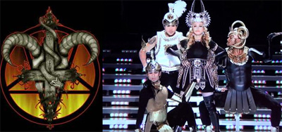 Madona a fost aleasă, de data aceasta, să fie protagonista ritualului satanic ce a deschis campionatul american. Partea cea mai ciudă a acestei „performanţe” este spre final. În momentul în care Madonna a rostit cuvântul „Home”, s-a deschis o trapă, care a înghiţit-o. Razele de lumină din fundal, versurile cântecului (care pregăteau scena finală), fumul care se ridica din „groapa” în care căzuse Madonna, toate acestea ne duc cu gândul la infern şi la Lucifer, îngerul decăzut!