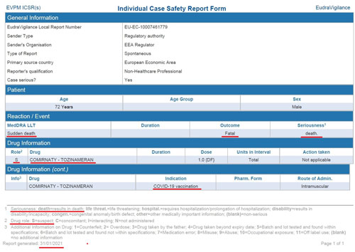 Moarte subită după vaccinul Comirnaty Pfizer/Biontech: