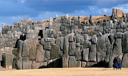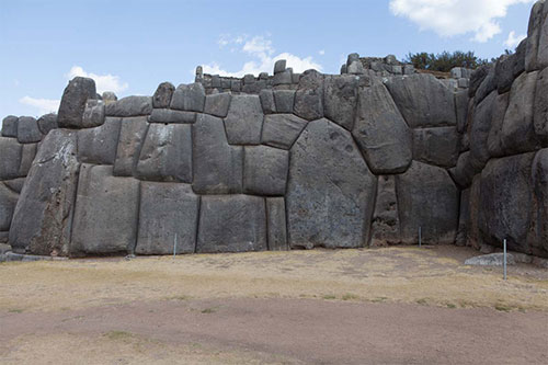 La periferia orașului Cusco din Peru se află complexul fortificat Saksaywaman. Situl arheologic este renumit pentru zidurile sale din piatră, care ajung în unele locuri la o înălțime de 6 metri și care au o lungime totală de circa 1 km. Multe dintre stâncile folosite în construcția zidului sunt enorme, chiar și de 200 de tone, fiind cele mai mari folosite la orice construcție din America prehispanică. Faptul este cu atât mai uimitor cu cât zidul se află la o altitudine de 3.700 de metri, pe un platou din Munții Anzi. Aceasta ridică întrebarea cum au fost transportate acele pietre uriașe în vârf de munte. Dar ceea ce frapează cel mai mult este forma complet neregulată a multora dintre aceste blocuri de piatră: rotunjimi, unghiuri și diferite întrepătrunderi! Cu toate acestea, ele se îmbină absolut perfect unele cu altele.