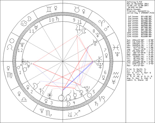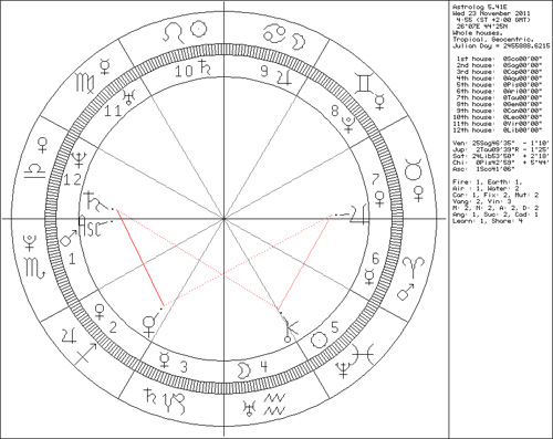Configuraţia este activă până în data de 25.11.2011, 22h55 (+2h00GMT) ora Romaniei, prima care părăseşte complexul planetar fiind Venus.