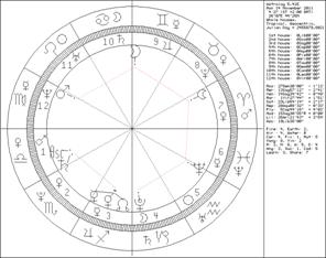 Soare, Venus, Pluto, conjuncţia Neptun/Chiron şi Uranus alcătuiesc o Nicovală dublă, rezultată din cuadratura Soare-Neptun/Chiron şi cuadratura Uranus-Venus/Pluto. În realitate, aici sunt mai mult de două configuraţii, datorate cuadraturilor duble făcute atât de Soare (cu Neptun şi cu Chiron) cât şi de Uranus (cu Venus şi cu Pluto), în vreme ce Venus face două sextile (şi cu Neptun şi cu Chiron). Nicolava conferă foarte multă intuiţie, trigonul ei (aici cel dintre Soare şi Uranus) indicând darurile cu care venim din vieţi anterioare sau dobândite deja în această viaţă. Sextilele ne conferă capacitatea de a le comunica; Neptun amplifică intuiţia spirituală iar Chiron confirmă posibilitatea de a ne trezi şi folosi la voinţă aceste calităţi spirituale ca urmare a învăţăturii spirituale primite de la un ghid spiritual autentic.