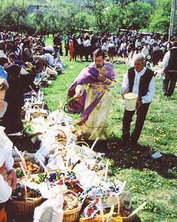 Sărbătoarea Floriilor reconstituie parțial atmosfera marii sărbători pascale. Înainte de a intra în Ierusalim, Christos l-a înviat pe Lazăr; această minune, ce prefigurează învierea lui Iisus, simbolizează învierea viitoare a neamului omenesc.