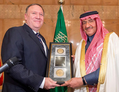 Crown Prince Mohammed bin Nayef, Deputy Premier and Interior Minister, was given the George Tenet award by CIA Director Mike Pompeo in February 2017.