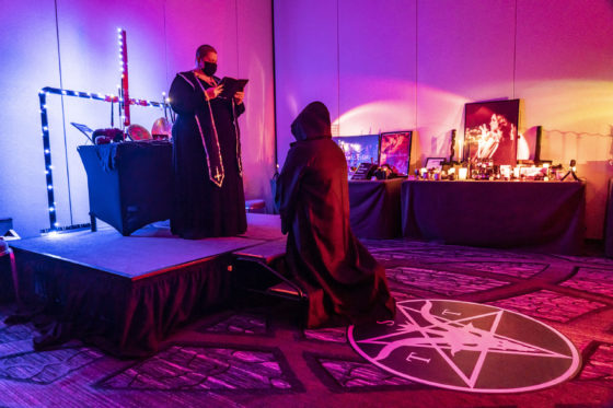 Trăiască Satana!”, a strigat unul dintre vorbitori, Chalice Blythe, care a repetat incantația în timp ce rupea o Biblie și un steag de apărare a poliției „Thin Blue Line” în timpul ceremoniei de deschidere.
