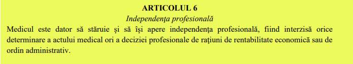 – Articolul 4 din Codul de Deontologie Medicală: