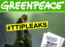 Greenpeace Olanda a obținut o parte din textul secret al negocierilor dintre UE și SUA privind parteneriatul TTIP şi a demarat analizarea documentelor. Cele treisprezece capitole, reprezentând aproximativ 50% din textul integral al negocierilor, au fost obținute cu condiția protejării anonimatului sursei. Aceste restricţii fac ca textul să nu poată fi încă integral publicat, însă acesta a fost prezentat rețelei de investigații aparținând publicației germane Süddeutsche Zeitung.
