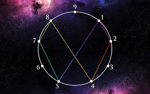 Dacă începem de la 1 în sens invers, vom obține același model doar în sens invers: jumătate din unu este 0.5 (0 + 5) egal 5. Jumătate din 5 este 2,5 (2 + 5) egal cu 7 și așa mai departe. După cum puteți observa, nu există nicio mențiune de 3, 6 și 9! Este ca și cum ar fi dincolo de acest model, liber de el.