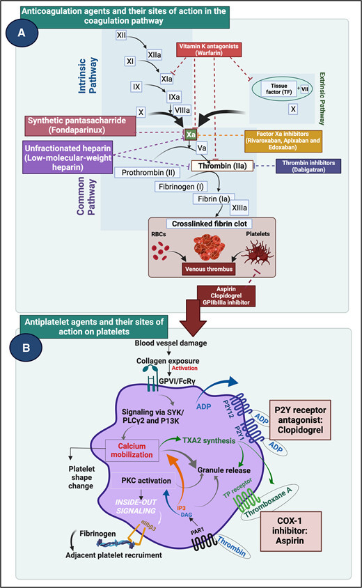 În general, există două clase de medicamente antitrombotice: anticoagulantele şi medicamentele antiplachetare. Anticoagulantele acţionează asupra cascadei de coagulare şi o împiedică să se finalizeze, în timp ce medicamentele antiplachetare inhibă activarea şi agregarea trombocitelor între ele şi la endoteliu.