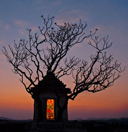 Un foc ieşit din gura unui şarpe subteran va arde lumile inferioare, apoi suprafaţa pământului şi va cuprinde apoi atmosfera. Această masă de foc va covârşi totul cu un zgomot asurzitor. Înconjurate de cercuri de foc, toate fiinţele fie că se mişcă sau nu, vor fi distruse. Zeul distrugerii va sufla enormi nori care vor face un zgomot teribil. O masă de nori încărcaţi de energie, atotdistructivi (sarvantaka), va apare pe cer precum o ceată de elefanţi.” (Vishnu Purana, I, cap. 8, 18-31.)