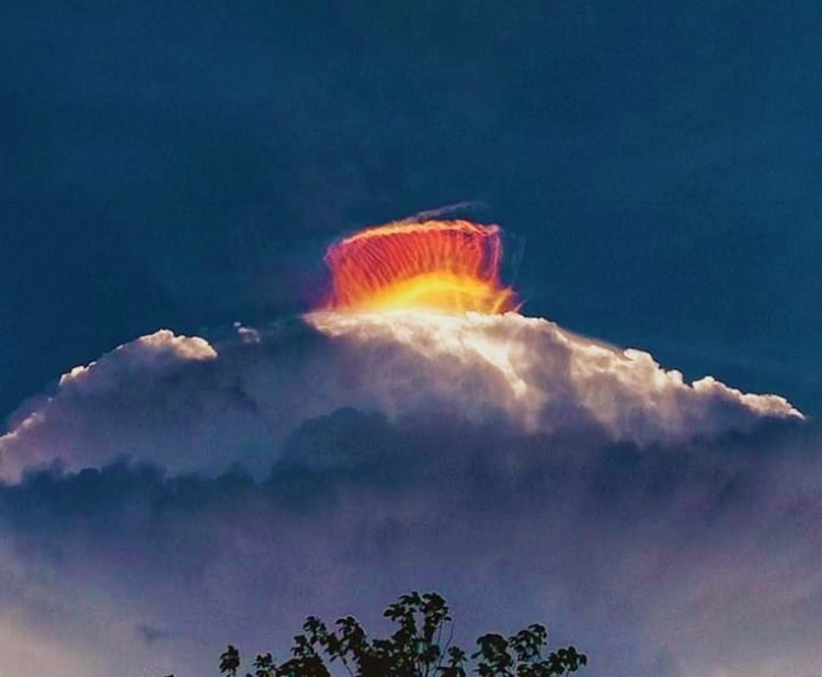 În câteva minute, o coroană multicoloră a apărut brusc și a crescut deasupra unui imens cumulonimbus (formaţiune de nori denşi de culoare cenuşie-plumburie, de mari dimensiuni, care se dezvoltă pe verticală de la suprafaţa pământului până la altitudinea de 10.000 m şi care aduce furtună cu ploaie, zăpadă şi grindină).