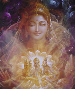 Aspectul esenţial, însă, care o defineşte pe Shakti ca minunată şi infinită Putere Supremă este perfecta Ei identificare permanentă (în esenţă) cu Eternul Absolut (Transcendentul Imuabil, Shiva). Shakti reprezintă atât Maya, iluzia, adică cea prin intermediul căreia Conştiinţa Absolută este ascunsă şi apare diferenţiată în manifestare, cât şi Mula Prakriti, sau starea nemanifestată şi nediferenţiată.