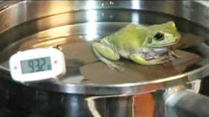„Se pare că dacă apa este încălzită suficient de lent, nu va determina nici măcar reacţii reflexe din partea unei broaşte normale; dacă este mai rapidă, însă totuşi suficient de lentă, broasca tot nu va reacţiona pentru a ieşi din vas.”