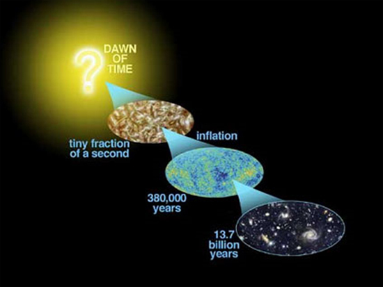 – L’univers observable est issu d’une phase dense et chaude (Big Bang), durant laquelle un mécanisme a permis à la région qui nous est accessible d’être très homogène mais de présenter de petits écarts à l’homogénéité parfaite. Ce mécanisme est probablement une phase de type inflation, quoique d’autres mécanismes aient été proposés.