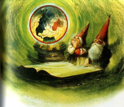 Astfel de persoane care au avut acces la lumea gnomilor şi la tainele care le guvernează existenţa sunt olandezii Rien Poortvliet şi Wil Huygen, care au scris mai multe cărţi despre ei, traduse azi în mai multe limbi, dar nu încă şi în limba română. Imaginile care însoţesc articolul de faţă aparţin traducerii în limba italiană. Din aceste cărţi (prima dintre ele intitulată „Secretele Gnomilor”) aflăm că noaptea solstiţiului de iarnă este marea lor noapte, când gnomii deschid cartea sacră şi scriu, într-o singură frază, evenimentul lor cel mai special al anului care tocmai se încheie.