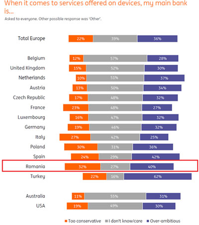 Sondajul a urmărit modul în care oamenii integrează în viețile lor schimbările aduse de impactul noilor tehnologii în relația cu banca. Deși mulți sunt entuziaști de noile tehnologii, adopția lor se face destul de lent, arată datele agregate.