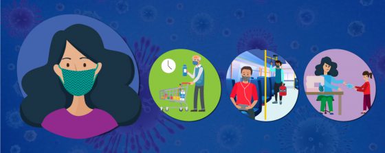 Purtați masca în orice moment în spațiile publice; chiar și atunci când distanța fizică devine mai mare de un metru, acoperiți gura și nasul cu masca.
