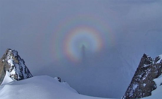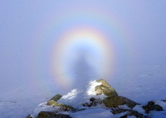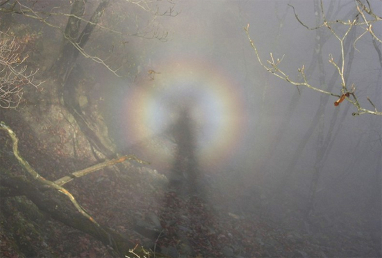 Un fenomen cunoscut mai mult iubitorilor de drumeţii montane, deşi poate nu mulţi au avut şansa să îl observe personal, este fenomenul optic numit Spectrul Brocken sau Fenomenul Gloria.