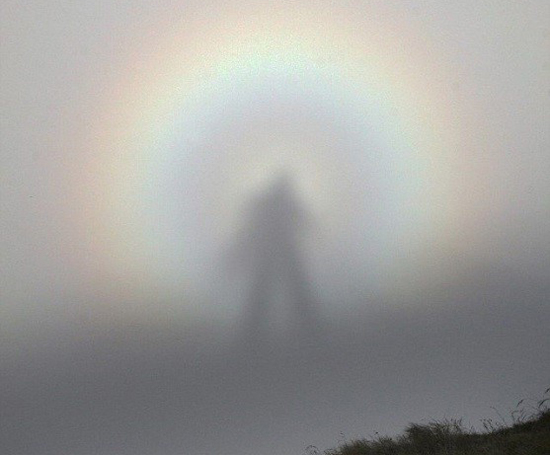 Fenomenul se produce mai ales în munţi. Propria siluetă îţi este proiectată pe cer, în mijlocul unei aureole.