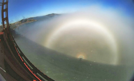 Într-una dintre călătoriile sale pe Duna lui Pilat, în Franţa, Florian Clement, un pasionat de fotografie şi de vreme, a putut observa şi imortaliza curiosul fenomen. El şi-a filmat umbra deformată şi înconjurată de un mic curcubeu circular. În acest video vă puteţi bucura de experienţa sa.