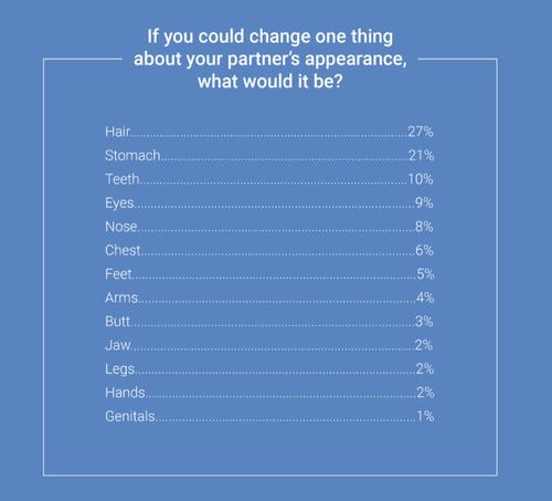 O proporție de 79% dintre repondenți au afirmat că „jumătatea” lor ar fi necesar să mai slăbească, iar 55% au declarat că sunt jenați de felul în care arată ființa iubită, cu ocazia diferitelor ocazii sociale.