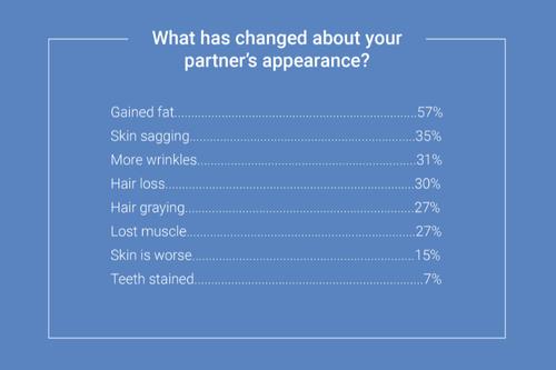 Mai bine de jumătate (52%) dintre cei chestionați au declarat că partenerul se îmbracă mai neglijent, iar 45% au afirmat că acesta/aceasta petrece mai puțin timp pentru a se îngriji.