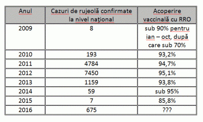 Interesant, nu? Adică avem epidemie în 2016, iar MS condamnă campaniile antivaccinare. Păi, cum se face că în 2011-2012, când numărul de cazuri a fost de 8-12 de ori mai mare ca acum, adică apocalipsa prin rujeolă, MS n-a scos niciun sunet de bucium? S-ar putea să găsim răspunsul dacă mai extindem puţin statisticile. Drept pentru care facem apel tot la rapoartele anuale puse cu atâta generozitate la dispoziţia publicului de INSP: