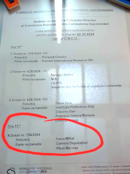 Am reclamat situația la CNCD și au refuzat să o analizeze. Am cerut justiției să îi oblige și, după ani de procese, au pierdut la ÎCCJ. FOTO urmat de continuarea articolului: