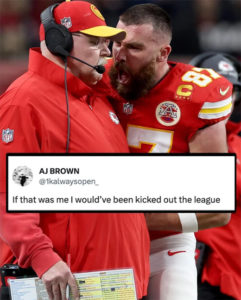 Jucătorul care a primit cea mai multă afecțiune și atenție a fost Travis Kelce, și tot el a făcut senzație la meci ……. țipând și îmbrâncindu-l pe antrenorul său mai în vârstă.
