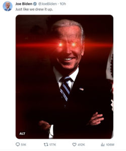 Chiar și mai rău este faptul că meme-ul cu Brandon Întunecatul a apărut inițial din locuri precum 4Chan, pentru a-l prezenta pe Joe Biden ca pe un răufăcător înfiorător, care execută ordinele unui Stat Profund autoritar. Dintr-un motiv oarecare, meme-ul a fost cooptat de echipa de PR a lui Biden și apare acum în locuri neașteptate.