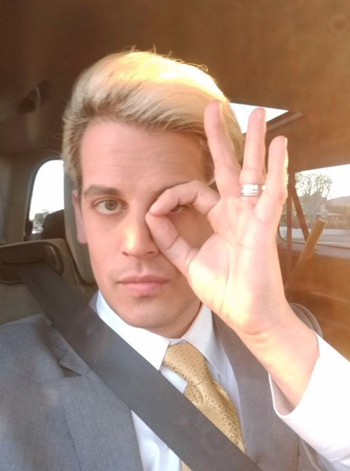 Out of hundreds of possible examples, here is another individual involved with perpetuating division between people, throwing up the hand sign: Milo Yiannopoulos.