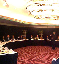 Una din agenţiile cheie în transmiterea instrucţiunilor secrete primite de la Tavistock este Fundaţia Ditchley, fondată în 1957. Filiala americană a Fundaţiei Ditchley este condusă de Cyrus Vance, fost secretar de stat şi director al Fundaţiei Rockefeller şi Winston Lord, preşedinte al Consiliului de Relaţii Externe (Council on Foreign Relations), membru Bilderberg şi Skull & Bones. Soţia lui Winston Lord, Bette Bao Lord, la rândul ei membru al Consiliului de Relaţii Externe şi al Bilderberg, este preşedinte al Consiliului Freedom House. Acest consiliu este răspunzător de manipularea drepturilor creştinilor prin ridicarea problemei persecuţiei religioase.