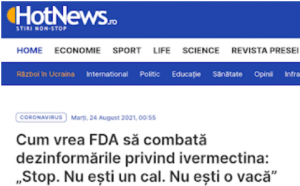 Însă, din nefericire, treburile nu au funcţionat aşa unse doar în domeniul propagandei, ci şi în cel medical. Numeroşi medici care prescriau ivermectina s-au văzut forţaţi la modul brutal să nu mai acţioneze în direcţia interesului pacientului, ci al propagandei deşănţate a FDA. Doar că în SUA practica medicală este foarte bine reglementată, iar medicii au o oarecare independenţă. FDA poate interzice un medicament, dar are răspundere pentru asta. Tocmai de-aici le vin problemele actuale.