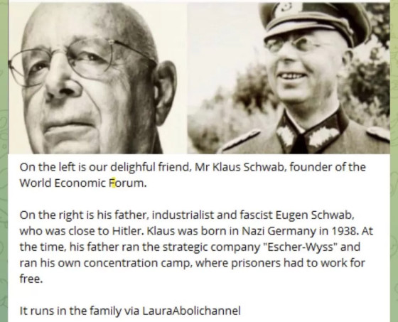 Regretabil pentru Newsweek și Davos este că mai supraviețuiește câte un ziarist în presa sufocată de propagandă și ideologie de extremă stânga! Astfel, putem afla trecutul pe care Klaus Schwab a încercat să-l ascundă din cauza implicării familiei Schwab nu numai în demersurile naziste pentru obținerea unei bombe atomice, ci și în programul nuclear ilegal al Africii de Sud din vremea apartheidului. Mai ales revelatoare este istoria tatălui lui Klaus, Eugen Schwab, care a condus în timpul războiului mondial filiala germană susținută de naziști a unei firme de inginerie elvețiană, ca un antreprenor militar proeminent. Compania Escher-Wyss a folosit munca forțată pentru a produce mașini esențiale pentru efortul de război nazist, precum și pentru efortul nazist de a produce apă grea pentru programul nuclear.