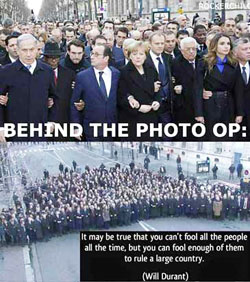 manifestaţie de amploare împotriva terorismului la care participă peste patruzeci de şefi de stat. E bombă! Televiziunile prezintă imagini sfâşietoare, cu marele cortegiu. Una dintre ele am ataşat-o acestui articol. Desigur, pe cea de jos n-a dat-o nimeni întrucât televiziunile transmiteau numai din faţă. A se înţelege că ultima remarcă era strict pentru descreţirea frunţilor.