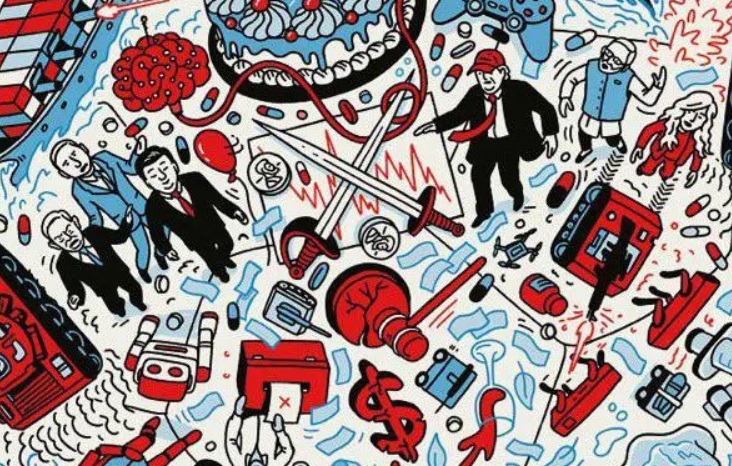 Revenind la coperta revistei, am observat și că există un grafic care pare să descrie un fel de prăbușire financiară, aflat chiar sub săbiile încrucișate. Și nu prea departe de acel grafic, se află o imagine roșie a unui simbol al dolarului rupt. În plus, în partea de jos a graficului, pare că bancnotele cad peste tot. Evident, încearcă să comunice ceva despre economia globală, și cu siguranță nu este ceva bun.