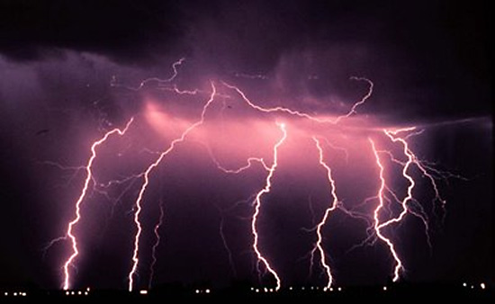 Since the air is electrically conducting, the current is accompanied by a downward-directed electric field of the order of 100 volts per meter on the ground. The average potential between ground and the ionosphere, called the atmospheric electric potential is 240 kV. but varying between about 180 and 400 kV. The electric field on the Earth’s surface is always at right angles to the ground. This indicates that the Earth’s surface behaves like an electric equipotential layer for continuous electric fields with greater electric current density at higher altitudes along the surface. One source of the space charge near the ground is due to the electrode effect. The negative ions drift upward and the positive ions drift downward under the influence of the vertical electric field. Thunderstorms are the main source of electromagnetic energy within the lower atmosphere and are believed to drive the global electric circuit.