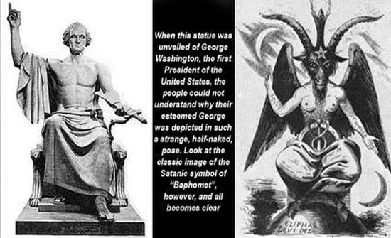 Baphomet is another god associated with Freemasonry, even though some Freemasons officially deny it. You can see master mason George Washington doing his Baphomet pose above. Baphomet was a hermaphroditic god (having both male and female genitalia) which will begin to take on more significance in the future, as we head into a transhumanistic world where the NWO transgender agenda (part of the synthetic agenda) is to make all humans more robotic – non-binary, genderless and sexless.
