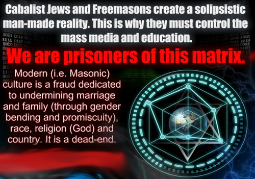Their agenda is to protect this monopoly by extending it into a monopoly over everything – power, knowledge, culture, religion – by reengineering humanity to serve them. This is “the matrix”. This is why Communist and LGBT values are foisted on children. Why universities have been neutered. Why corporations and banks promote migration and homosexuality. Why the foreign policy of the West is bent on destroying any resistance (Russia, Syria, Yemen, Iran, Korea). Society is satanically possessed by these people who use Freemasonry and organized Jewry as their instruments. Why do so few “pundits” get this?