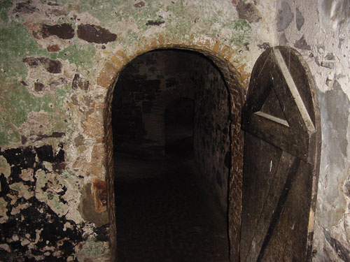 And I thought of another thing. I’ll do this then! I saw where her keys were hid right there in her shelf in her own room. So they’re on a big chain, or a big ring, and I thought, “I’m going to take those keys. I’m going down into that dungeon.” When I say down, this is two stories under the ground. I’m going someplace where she’s always warned us. It’s a solid wall like that, and clear to the back end of that wall there’s one door, and it’s heavy, and it’s always locked, and I’ve heard her tell me scores of times (and I’m sure she has told the others) “Don’t ever try to go through that door.”