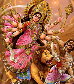 Marea Putere Cosmică Tripura Bhairavi mai este cunoscută şi ca Durga, adică Zeiţa care salvează fiinţa umană din toate situaţiile dificile. În cele mai multe din reprezentările sale, Durga este înfăţişată călărind un leu care, după cum se ştie, este un simbol al focului şi al energiei solare. Având o atitudine teribilă şi ameninţătoare, ea mânuieşte cu dexteritate armele ei de lumină divină pentru a distruge toţi demonii şi toate forţele negative care îl tulbură pe adoratorul ei sincer şi devotat. Prin urmare, ea îl ajută pe acesta să depăşească cu succes orice boală, tristeţe, suferinţă şi chiar să învingă moartea.