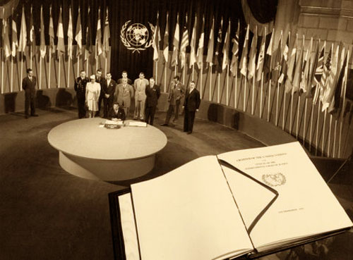 October 24, 1945 – The United Nations Charter becomes effective. Also on October 24, Senator Glen Taylor (D-Idaho) introduces Senate Resolution 183, calling upon the U.S. Senate to go on record as favoring creation of a world republic, including an international police force.