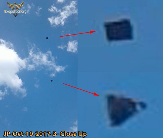 In the months of September and October 2017, an anonymous whistleblower, JP, took photos of both triangle and rectangle shaped antigravity craft flying in the vicinity of MacDill Air Force base. On several occasions he was prompted by covert personnel to look up into the sky to take the photos, but warned against taking video of the craft he witnessed.