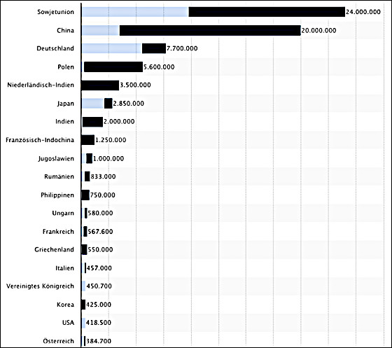 Alte cifre dintr-un articol al lui René Zittlau ilustrează în mod impresionant povara de război mult mai mare a rușilor – a se vedea „SUA rescriu, de asemenea, istoria”.