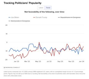 Sondajul a constatat că favorabilitatea netă a lui Trump a fost cu patru puncte mai mare decât cea a lui Biden: