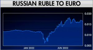 În iunie, rubla a ajuns la cel mai înalt nivel al său din ultimii șapte ani în fața dolarului american. Priviți și la acest grafic care arată evoluția rublei în comparație cu euro.