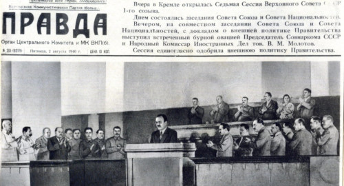Bunăoară Izvestia din 3 iulie 1940, în articolul de proporții „Istoria Basarabiei și a Moldovei” susținea că „există probe ce demonstrează că slavii locuiesc aici (adică în Basarabia și RASSM) din cele mai străvechi timpuri. Conform surselor grecești, pe timpul Împărăției Dacilor, triburile slave locuiau nu numai în Basarabia, dar și pe teritoriul cnezatelor dunărene”. Până și titlul denotă cunoștințele aproximative ale autorului în domeniile istoriei și ale geografiei (precum scriu unii și în zilele noastre – „Moldavia i Pridnestrovie”). Însă bate la ochi data apariției acestei publicații – 3 iulie 1940, adică cu o săptămână până la ședința comună a Biroului Politic al CC al PC (b) unional și a SKN din URSS, unde a fost discutată și susținută ideea cu privire la formarea RSSM. Cu alte cuvinte, „calul troian” a fost pregătit din timp, văzându-i-se de la o poștă „urechile” ucrainene…….